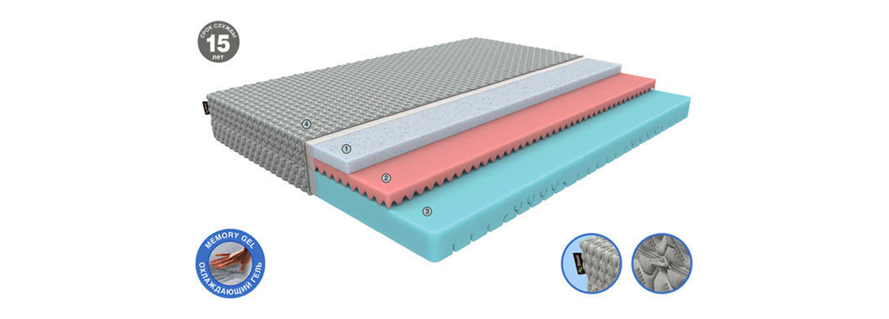 Матрас SKYLINER дарит ощущение нежности и воздушности. Верхний слой матраса выполнен из инновационной пены с эффектом памяти и частичками охлаждающего геля Memory Gel.